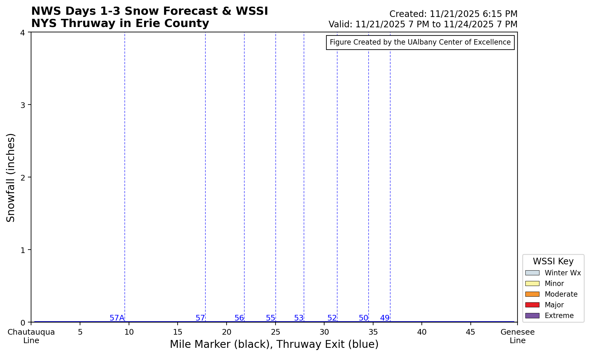 Latest Days 1 - 3 Snow Forecast and WSSI Along the NYS Thruway in Erie County (click to enlarge):